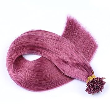 Keratin Bonding Hair Extensions 100 Remy Human Hair Extensions Purple Per Hank 0 5 G 50 Cm U Tip Extension Remy Quality By Hair Of Amazon De Beauty